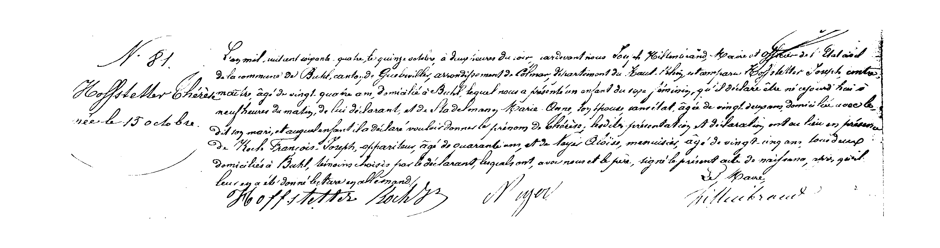 Acte de naissance de HOFFSTETTER Thérèse